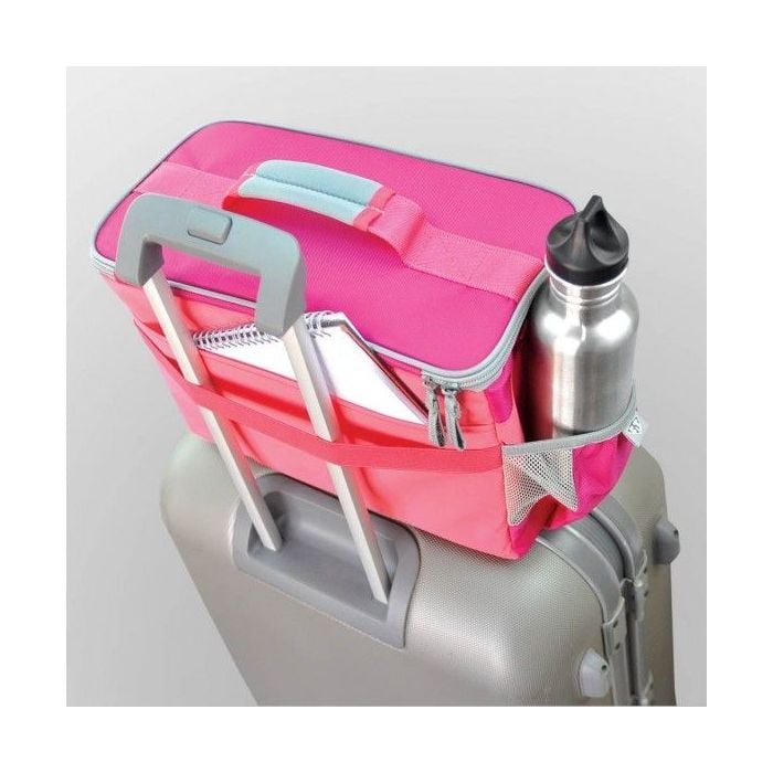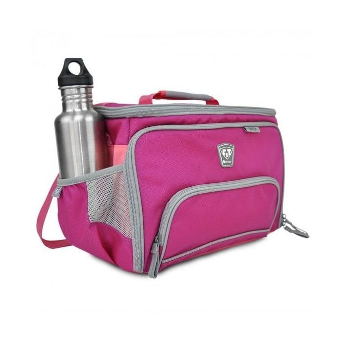 BOX LG Food Bag in pink, in der Sie Ihre gesunden Lebensmittel einpacken und überall hin mitnehmen können. Leichte und tragbare Tasche aus hochwertigem ballistischem Nylon. Die Packung enthält 4 starkverschließbare Lebensmittelboxen (BPA-frei), einen praktischen Shaker für Ihre Nahrungsergänzungsmittel und Proteine sowie 2 Kühlgels, um die Lebensmittel kühl zu halten.