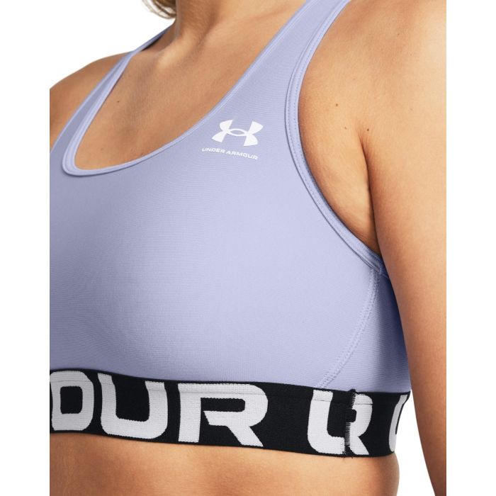 Authentics Mid Branded BH ohne Polsterung ist ein zuverlässiges und funktionales Teil für alle aktiven Frauen. Mit der HeatGear Technologie ist es angenehm auf der Haut. Es hhält fest, leitet zuverlässig den Schweiß ab und trocknet schnell. Sie hat eine stylische Passform mit einem Ausschnitt am Rücken für bessere Belüftung. So wird sie zu einem Designerstück, das dein sportliches Outfit ergänzt.
