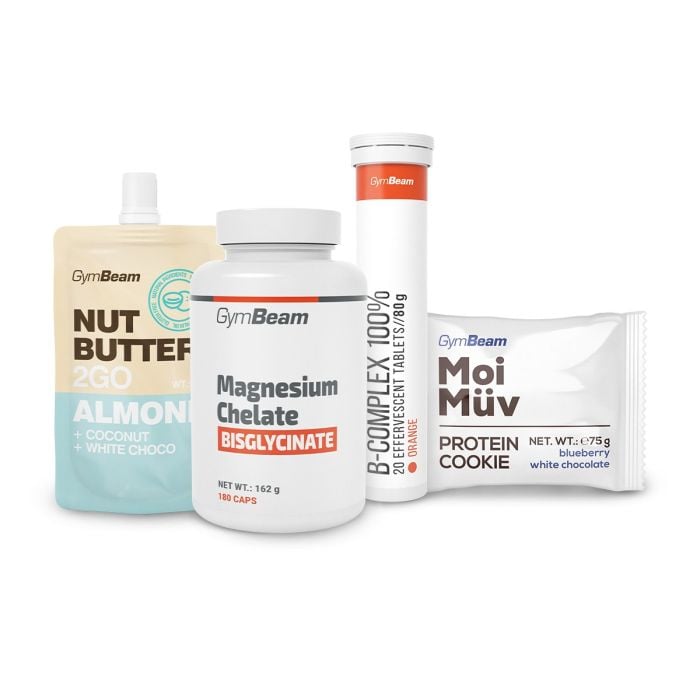 -180-Kapsel-Packung + Nut Butter 2GO Mandelbutter, Vitamin B-Komplex 100% Brausetabletten und ein Protein-Cookie.