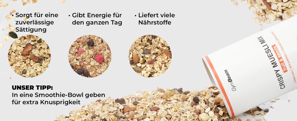 Die Mischung ist perfekt ausgewogen und versorgt dich mit einem Maximum an Nährstoffen. Sie schmeckt mit Joghurt, Milch oder Hüttenkäse, und du kannst sie auch als Snack genießen.