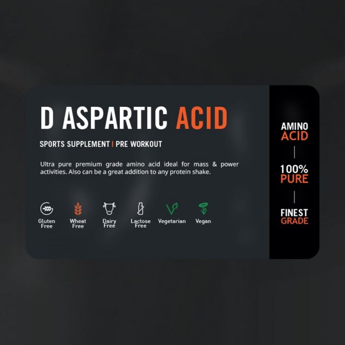 D-Asparaginsäure ist eine Quelle von 100% reiner D-Asparaginsäure (DAA) in Pulverform. Es ist nicht essentielle Aminosäure, die ein Bestandteil von mehreren Supplementen zur Unterstützung von Testosteronbildung und Kraftsteigerung. DAA ist betrachtet als Regulator der Testosteronsynthese, dieser Hormon ist wichtig für Männer, weil nicht nur die sexuelle Aktiviät beeifnlußt, sondern auch Bildung von Muskelmasse. Die D-Asparaginäsure ist auch für Veganer und Vegetarier geeignet.