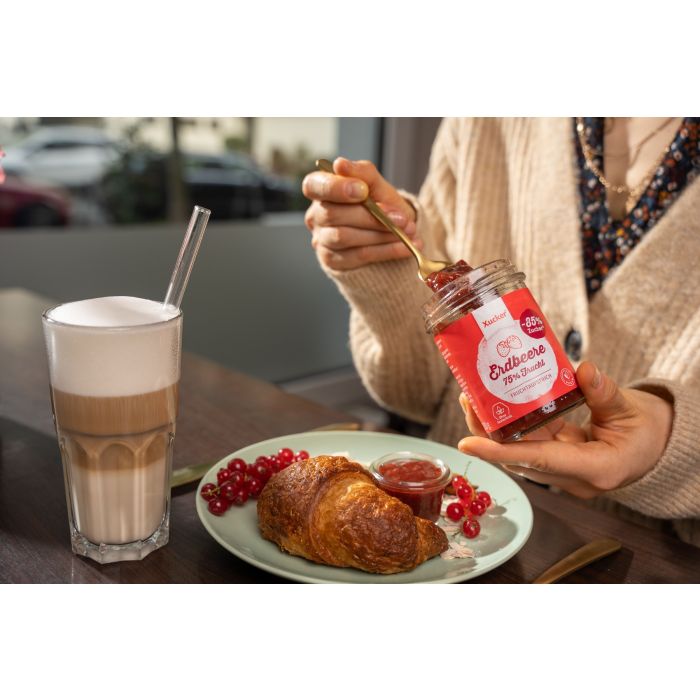 Erdbeermarmelade ist ein echter Fruchtaufstrich mit einem hohen Fruchtanteil ohne zugesetzte Konservierungsstoffe, Aromen und Farbstoffe. Der Aufstrich ist handgemacht und mit Xylit gesüßt, das genauso süß ist wie normaler Zucker, aber viel weniger Kalorien hat. Er eignet sich hervorragend als Teil des Frühstücks, als Snack oder für die Zubereitung von Desserts. Du liebst Süßes, machst dir aber Sorgen über den Zuckergehalt? Probiere einen hochwertigen GMO-freien Fruchtaufstrich, der auch für Veganer geeignet ist.