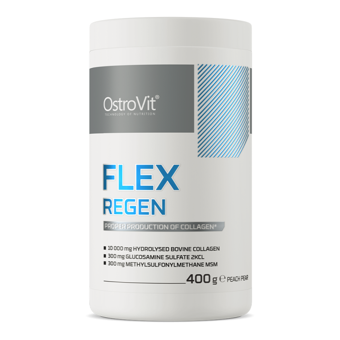 Flex Regen ist eine komplexe Gelenknahrung, die eine Quelle wertvoller Stoffe wie Kollagen, Kalzium, Glucosamin und ausgewählte Vitamine ist. Dank Kalzium unterstützt esdie Erhaltung gesunder Knochen und die richtige Muskelfunktion. Es enthält auch Vitamin C, das zur normalen Bildung von Kollagen und der ordnungsgemäßen Funktion von Knochen oder Knorpeln beiträgt. Es wird von allen geschätzt, die sich optimal um ihren Bewegungsapparat kümmern wollen.