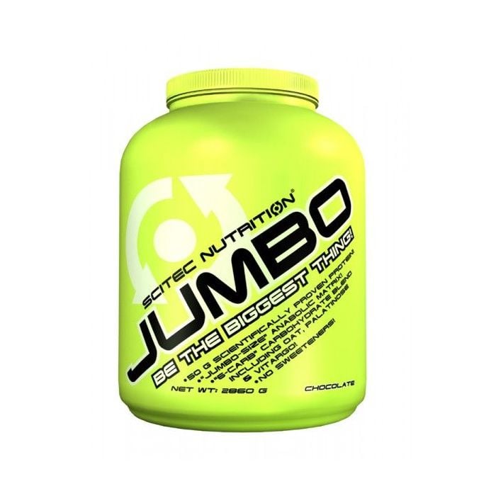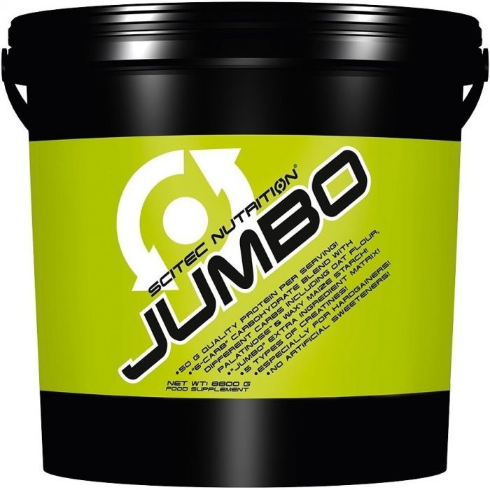Jumbo ist ein Gainer, der aus erstklassigen Molkenproteinen, die die Grundlage für Muskelwachstum und -regeneration bilden, und Kohlenhydraten aus der "6-CARB" -Mischung (Haferflocken, Palatinose, patentierter Wachsmais mit hohem Molekulargewicht) besteht. Es enthält auch einen Kreatinkomplex, der die Muskeln mit Energie versorgt und ein intensiveres Intervalltraining ermöglicht. Jumbo enthält 50 Gramm hochwertigstes Protein in einer einzigen Dosis und eine große Dosis Energiebombe gleicht die Nahrungsaufnahme aus. Diese Proteine tragen zum Erhalt und zur Steigerung der Muskelmasse bei. Von Milch abgeleitete Molkeproteine sind vollständige Proteine, da sie dem Körper alle erforderlichen Arten von Aminosäuren zur Verfügung stellen, einschließlich 9 Aminosäuren, die der Organismus nicht selbst herstellen kann und die in Form von Nahrungsmitteln (Histidin, Isoleucin, Leucin, Lysin) eingenommen werden müssen (Methionin, Phenylalanin, Treonin Tryptophan, Valin). Molkenprotein zeichnet sich durch eine gute Verdaulichkeit sowie eine gute Darstellung der Aminosäuren aus und weist daher eine hervorragende biologische Wertigkeit auf.