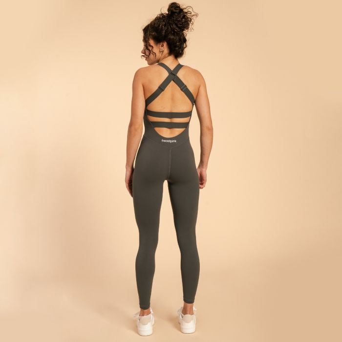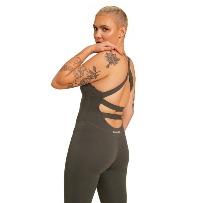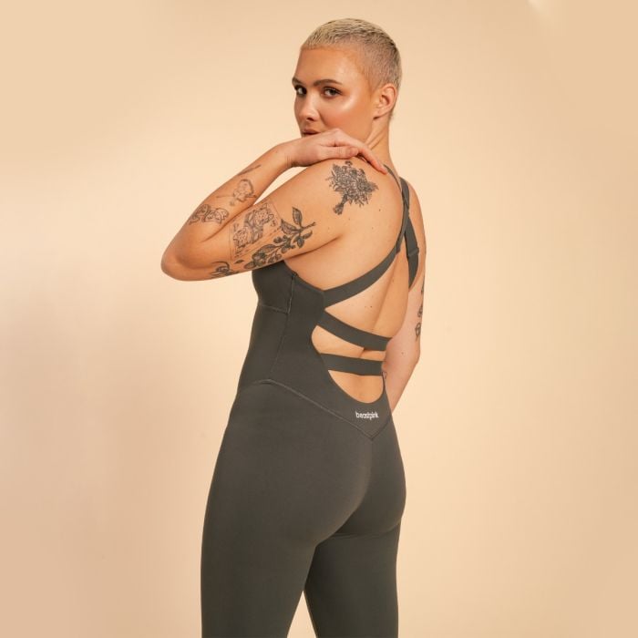 Der Hyper Jumpsuit aus funktionellem Material formt deine Figur und ist dank des Cut-Outs am Rückens extrem schmeichelhaft