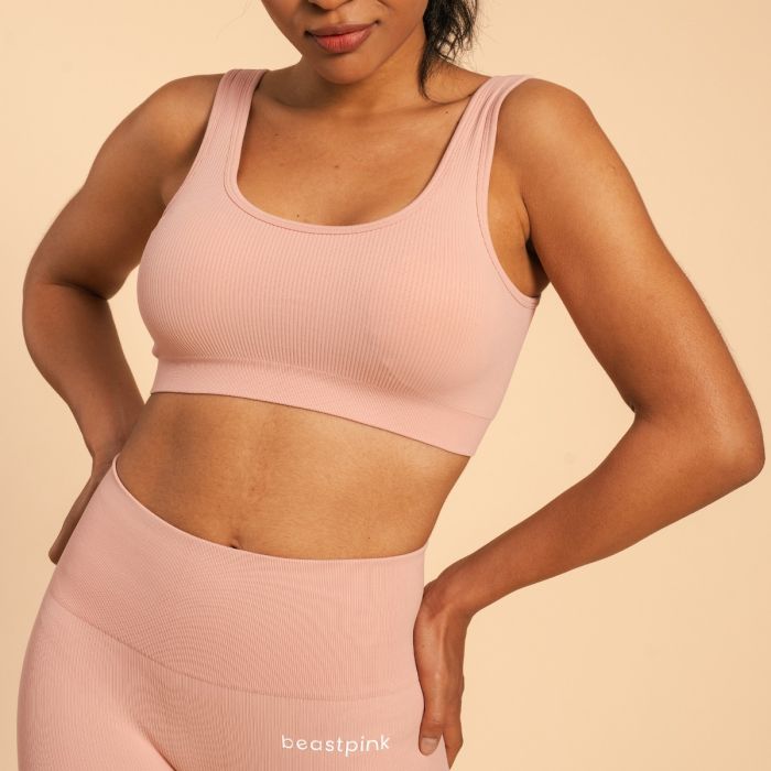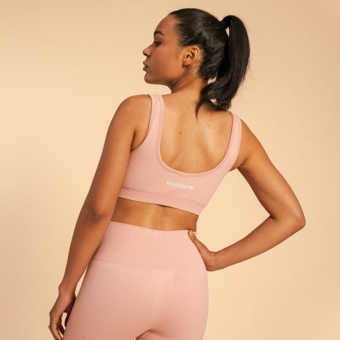 Neben dem perfekten Material des BHs wirst du auch seine Passform lieben. Er ist so geschnitten, dass er sich perfekt an deine Kurven anschmiegt, damit du dich auf dein Workout konzentrieren kannst. Auch das zeitlose Design ist zu erwähnen. Er besticht durch sein trendiges Rippenmuster und den offenen Rücken, die ihm einen einzigartigen Look verleihen. Außerdem ist er mit einem BeastPink-Logo auf dem Rücken verziert.