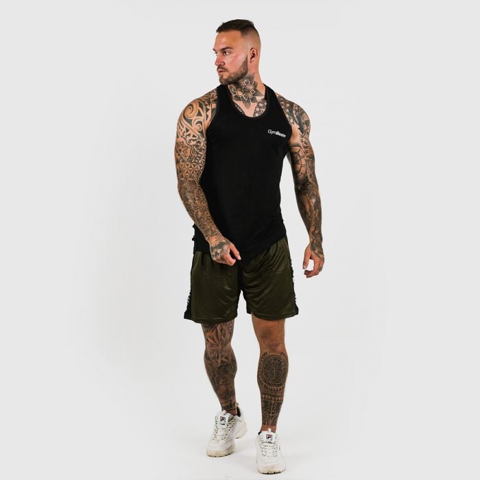 Leibchen für Männer Ripped Tank Top Black ist aus hochwertigem Material gefertigt, das luftig ist und Schweiß absorbiert. Dank ihm fühlen Sie sich während des Trainings und beim Tragen ungezwungen. Ein einzigartiger Schnitt hebt Ihre ausgearbeitete Figur, Schultern und Hände hervor.