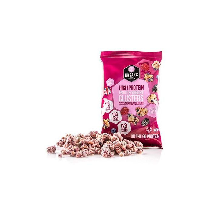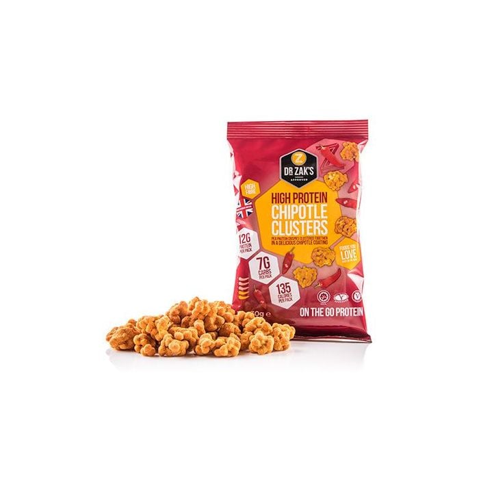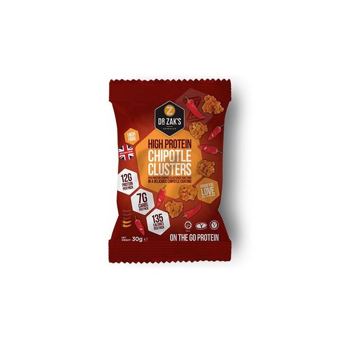 High Protein Clusters sind Süßigkeiten mit hohem Proteingehalt, die sich zu jeder Tageszeit zum Verzehr eignen. Kleine Kugeln mit knusprigem Geschmack sind eine reichhaltige Proteinquelle - bis zu 12 Gramm Erbsenproteinisolat in jeder Packung (ein erstaunlicher Proteingehalt von 41%). Sie enthalten kein Palmöl und sind auch für Vegetarier geeignet. Im Menü finden Sie drei Geschmacksrichtungen, Schokolade, Obst und Joghurt oder extrem scharfe Chili-Chipotles, aus denen Sie mit Sicherheit Ihren Favoriten auswählen werden.