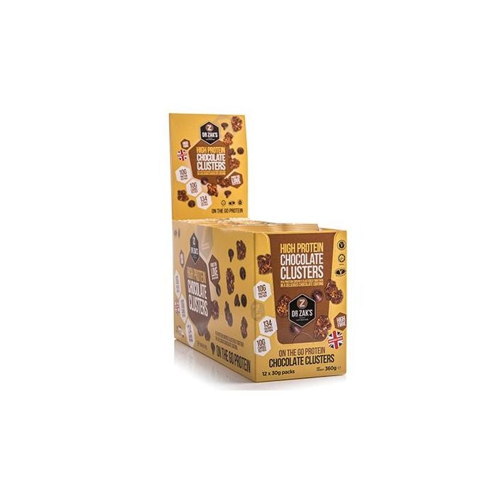 High Protein Clusters sind Süßigkeiten mit hohem Proteingehalt - bis zu 12 Gramm Erbsenproteinisolat in jeder Packung (ein erstaunlicher Proteingehalt von 41%). Sie enthalten kein Palmöl und sind auch für Vegetarier geeignet. Im Menü finden Sie drei Geschmacksrichtungen, aus denen Sie sicher Ihren Favoriten auswählen werden.
