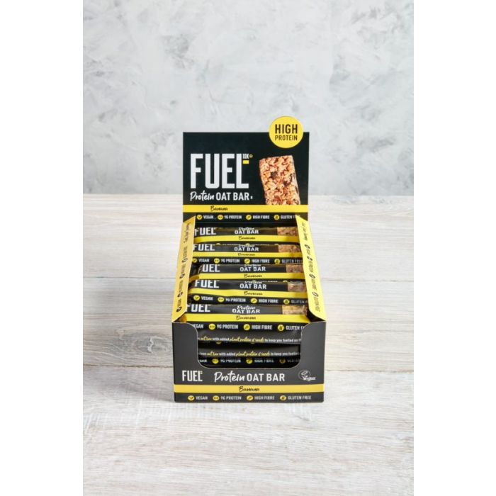 Der Protein Oat Riegel ist der perfekter Snack, wenn du gerade Mal in Eile bist, oder etwas Leichtes essen möchtest. Er besteht hauptsächlich aus glutenfreien Haferflocken, wodurch er auch für Menschen mit einer Glutenunverträglichkeit geeignet ist. Außerdem ist er reich an Ballaststoffen und enthält pro Portion 9 Gramm Proteine. Auch Veganer können ihn ohne weiteres genießen, da er keine Tierbestandteile enthält.