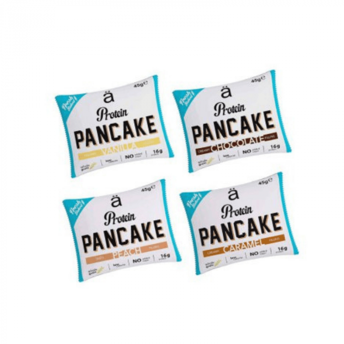 Protein Pancake ist ein köstlicher Snack, der bis zu 16 g Eiweiss enthält. Diese Vollkornnascherei hat einen niedrigen Gehalt von Kalorien und ist ohne zugegebenen Zucker. Sie können sich aus vier cremigen Möglichkeiten auswählen. Naschen Sie ohne schlechtes Gewissen!