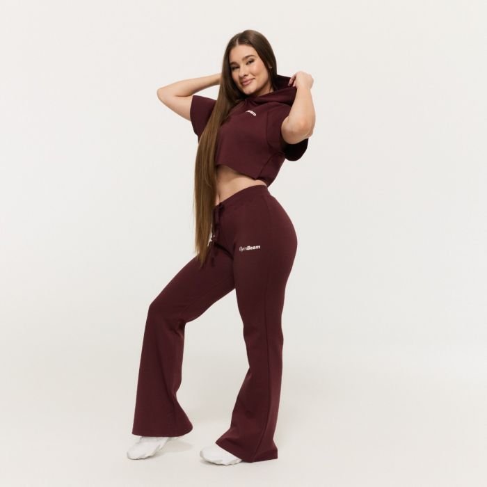 Dieses Modell fällt sofort mit seinem modernen „Flare“-Schnitt auf, der sich ab den Knien sanft nach unten verbreitert. Das Design schmeichelt der Figur und wirkt besonders feminin. Da die Hose ohne Taschen auskommt, entsteht ein klarer und eleganter Look. Außerdem ist die Jogginghose mit mittelhohem Bund mit einem praktischen Gummiband und Kordelzug ausgestattet, sodass sie individuell an deine Bedürfnisse angepasst werden kann.