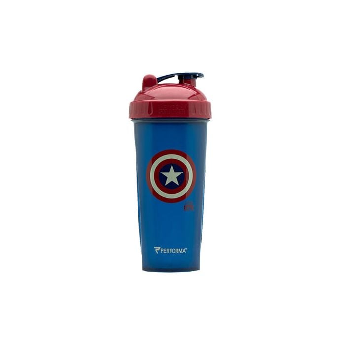 Performa Captain America ist ein Qualitäts-Shaker für Supermänner mit einem Fassungsvermögen von 800 ml. Jetzt können Sie mit der Original Performa Edition mit den Comic-Superhelden-Logos als echter Superheld trainieren! Es besteht aus BPA-freiem, sicherem Kunststoff und verwendet nur Lebensmittelfarben. Es kann in der Spülmaschine gewaschen werden und die neue verbesserte Getränkemischtechnologie sorgt für ein gleichmäßiges Mischen ohne Klumpen und Unordnung.
