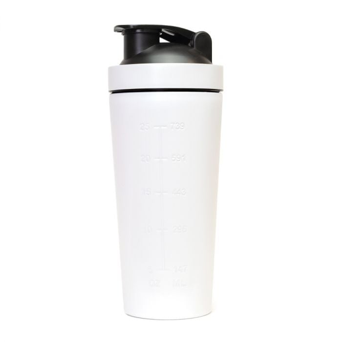 Der Shaker besteht aus Edelstahl, ist aber trotzdem leicht und praktisch. Er hat ein Volumen von 750ml und einen Schnappdeckel. Dank seines hochwertigen Materials ist er haltbarer und hygienischer als ein Plastikshaker. Er eignet sich hervorragend zum präzisen Mischen deiner Lieblingsnahrungsergänzungsmittel. Außerdem ist er geruchsneutral und hat eine längere Lebensdauer.