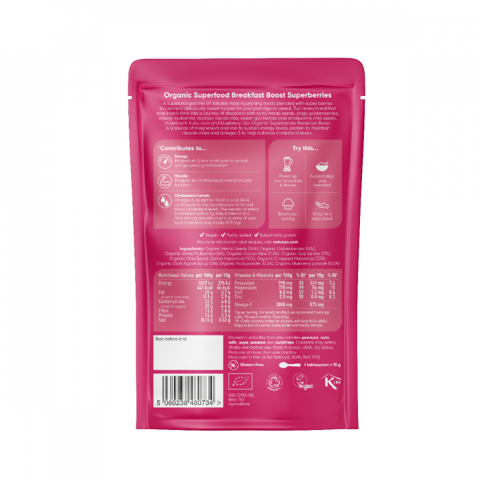 Die gesunde Mischung eignet sich hervorragend zum Frühstück oder für Ihre Lieblings -Smoothies . Alle Zutaten der Mischung sind in Bio-Qualität, enthalten kein Gluten und sind auch für Veganer geeignet.