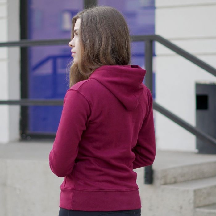 Sweatshirt für Damen Athlete Burgundy White ist ein Fitnessstück, das Sie sowohl beim Training als auch an einem lockeren Tag warmhält