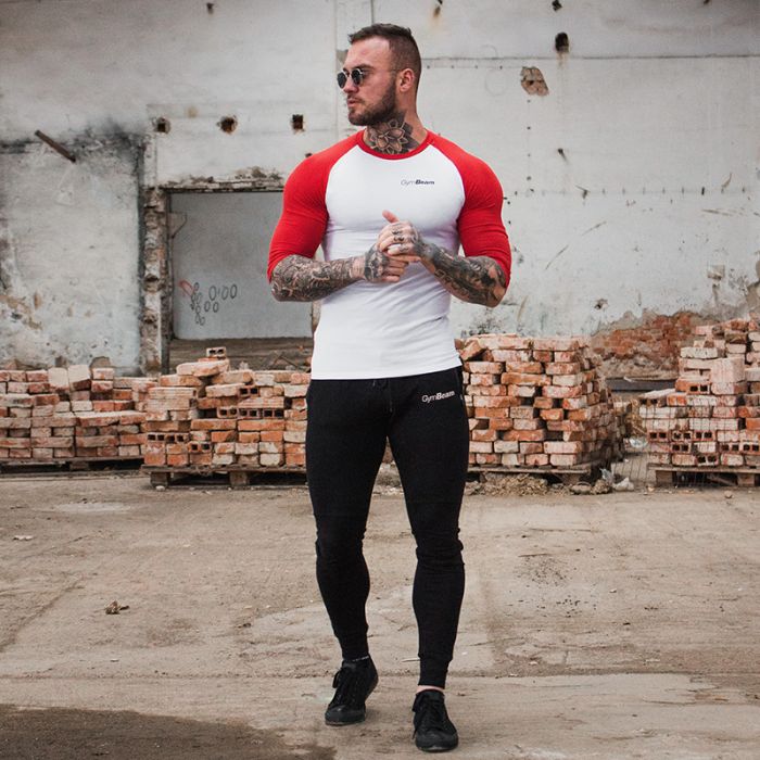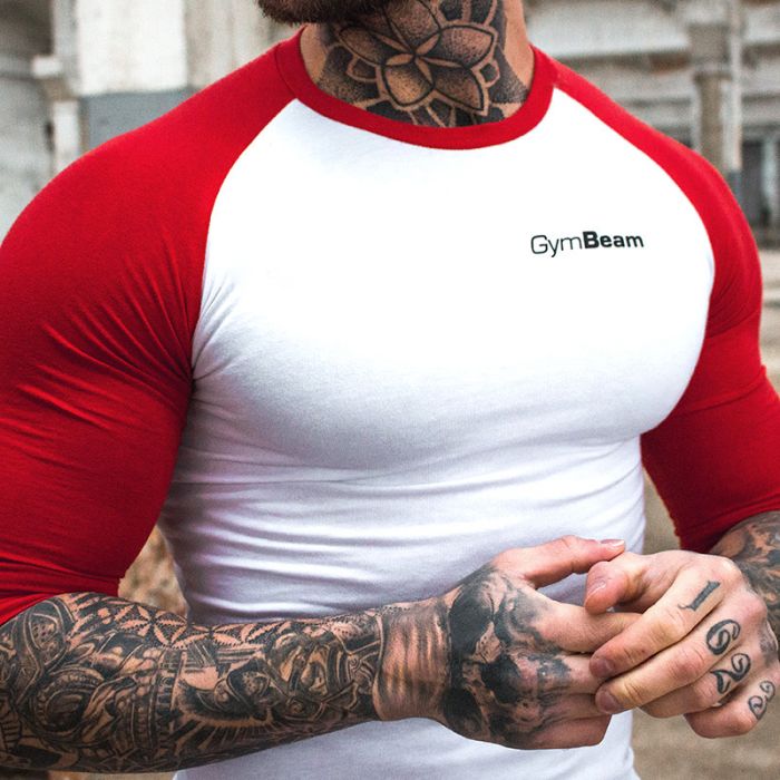 T-Shirt für Männer Fitted Sleeve White Red - GymBeam
