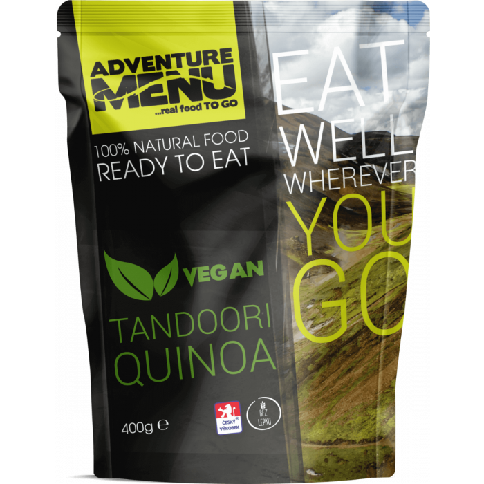 Tandoori Quinoa ist eine exotische Delikatesse in Form eines Fertiggerichts mit Süßkartoffeln, Quinoa, einer Mischung aus saftigem Gemüse, Gewürzen und Chili. Es ist eine ideale Wahl für aktive Menschen , die während langer Wanderungen hochwertige Lebensmittel genießen möchten . Es wird jedoch auch von Campingliebhabern geschätzt, die kein Fast Food essen möchten. Du kannst es ganz schnell und einfach nach Anleitung zubereiten. Tandoori Quinoa wird nicht nur Veganern, sondern auch allen Fleischliebhabern gefallen. Es wird letzteren eine neue Geschmacksdimension zeigen, die sie vorher nicht kannten.