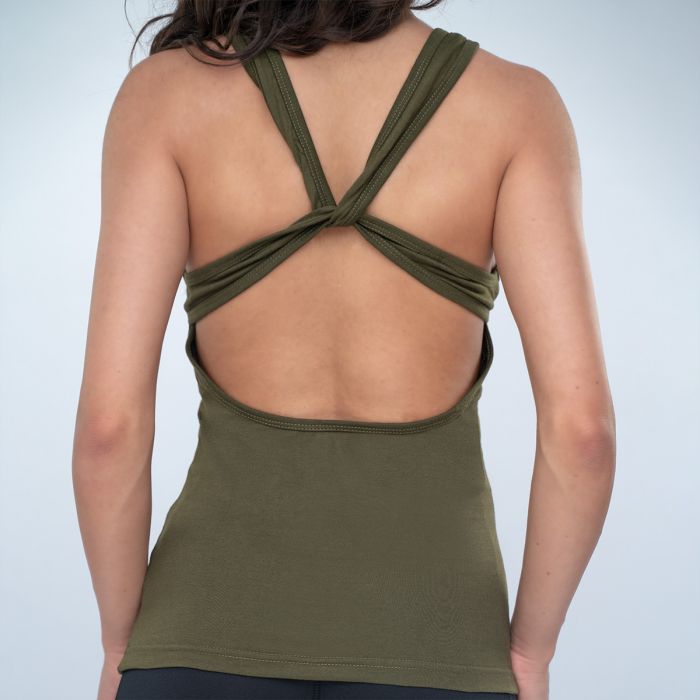 Tank Top für Damen Crossed Military Green hat ein trendiges Design, in dem Sie sowohl beim Training als auch in der Freizeitkleidung ein Star sein werden