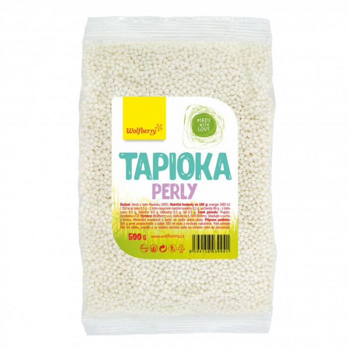 Tapiokaperlen sind eine Form von Tapioka, die aus dem weißen Fruchtfleisch essbarer Maniokknollen hergestellt wird. Perlen sind reich an komplexen Kohlenhydraten ohne Fettgehalt. Sie eignen sich als Ersatz für Reis, zur Zubereitung von Pudding und Desserts, für Sahne für Kuchen, zum Erweichen von Teig oder zum Eindicken von Suppen.