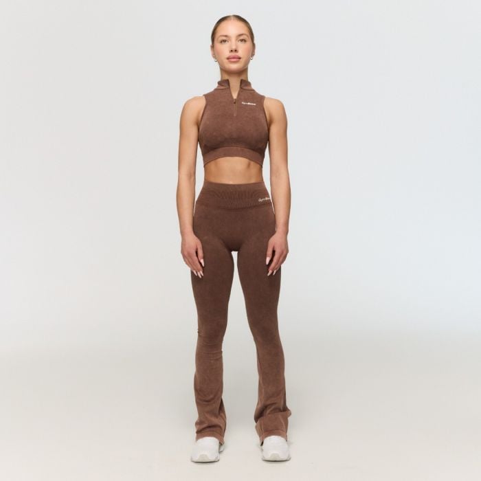 Diese funktionellen Leggings mit washed Effekt verfügen über ein Push-up- und Scrunch Butt Design, das deine Gesäßmuskeln perfekt formt. Zusammen mit einer eng anliegenden Passform und einer gerippten hohen Taille, formen sie wunderbar die Figur und betonen deine Kurven. Von den Knien abwärts weiten sich die Push-up-Leggings allmählich in den beliebten Flare-Schnitt. Allerdings behalten sie einen minimalistischen Look und lassen sich leicht mit anderen Sportteilen kombinieren. Zieh diese trendigen Flared-Leggings an und genieße ein Gefühl von Selbstvertrauen und Komfort bei jedem Workout.
