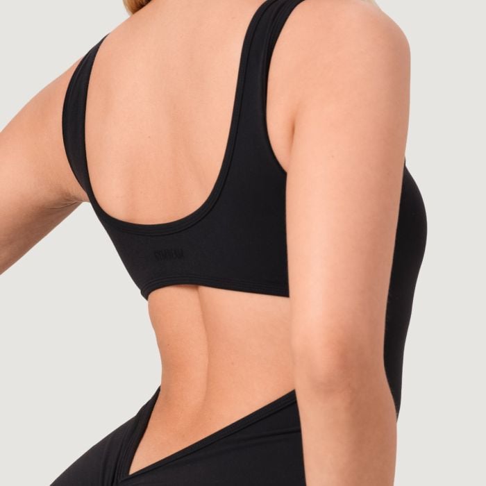 Dieser sportliche, blickdichte, ärmellose Jumpsuit mit rundem Ausschnitt besticht durch sein Design und den schlanken Schnitt, der sich perfekt an deine Figur schmiegt. Lange Beine mit einem beliebten ausgestellten Abschluss (Schlaghosen) verlängern die Beine optisch, während der Effekt am Rücken die Gesäßpartie schön formt und betont. Das Fehlen einer Vornaht garantiert maximalen Komfort ohne unangenehmes Gefühl.
