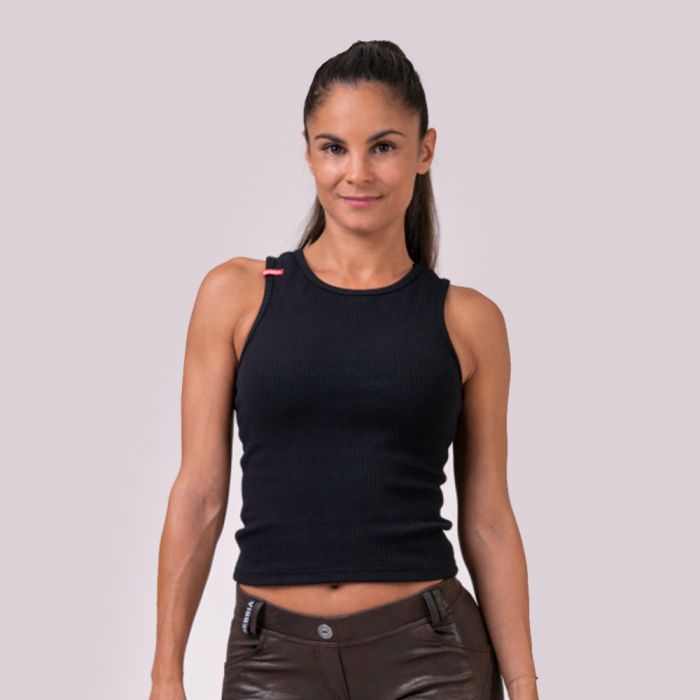 Women's Labels Crop Tank Top Black - stylische Sportbekleidung für alle Fitnessbegeisterten aus einem elastischen Material mit feiner, gerippter Oberfläche